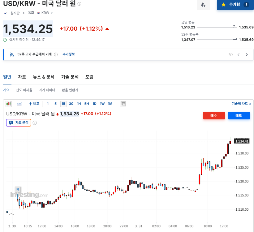 실시간으로 원화가치가 녹아내리고 있습니다..
